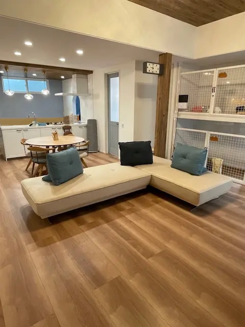 納品場所:福山市 納品家具:カウチソファ、ダイニングセット、壁面収納、キッチ...