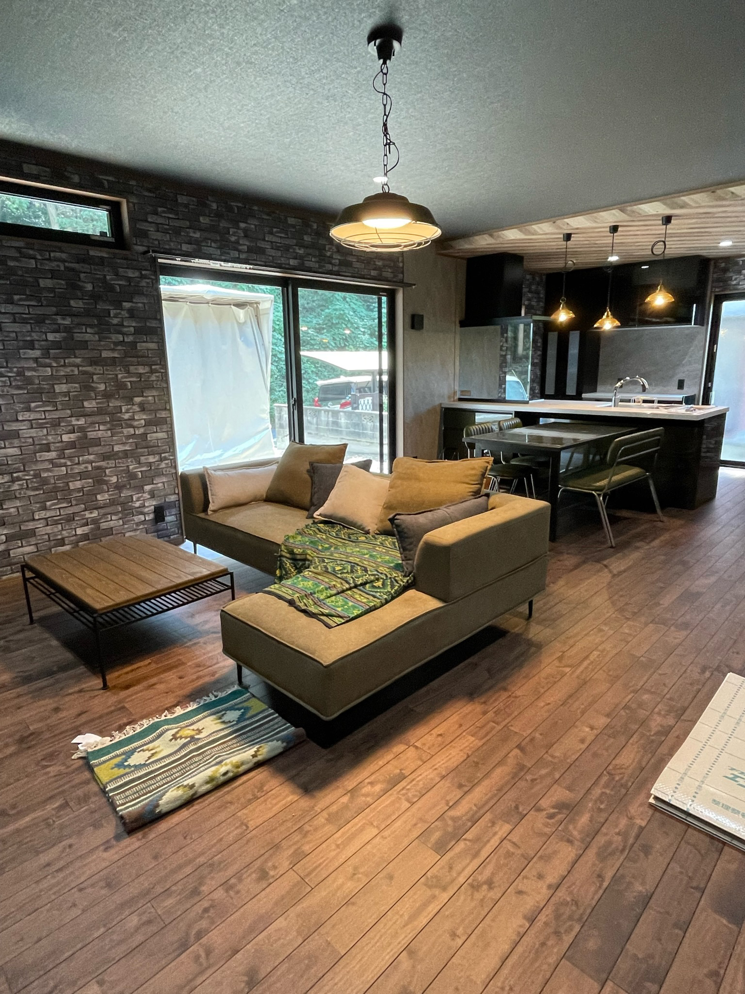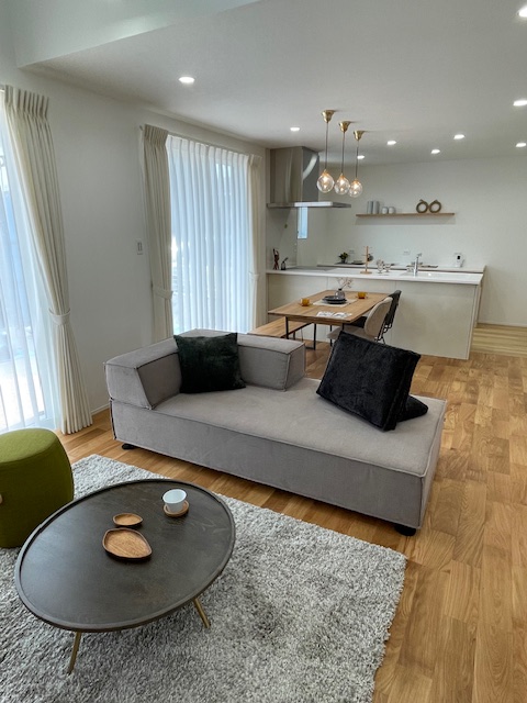 納品場所:福山市 納品家具:アイランドソファ、ダイニングセット、照明 -
