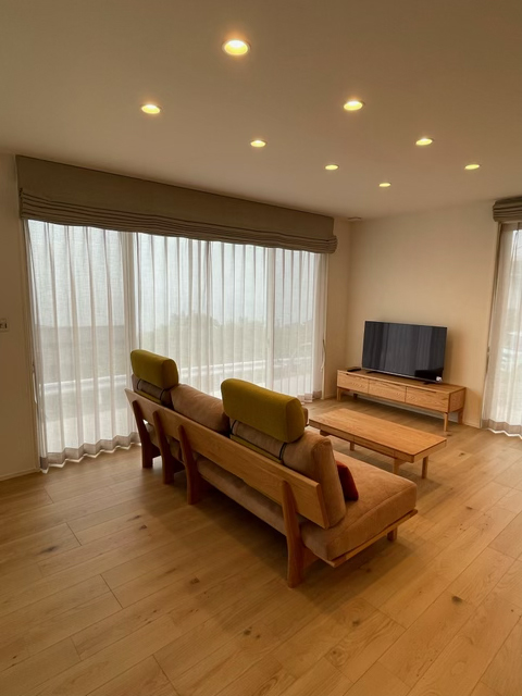 オークの素材を生かしたナチュラルコーディネートのインテリア空間 in 福山市