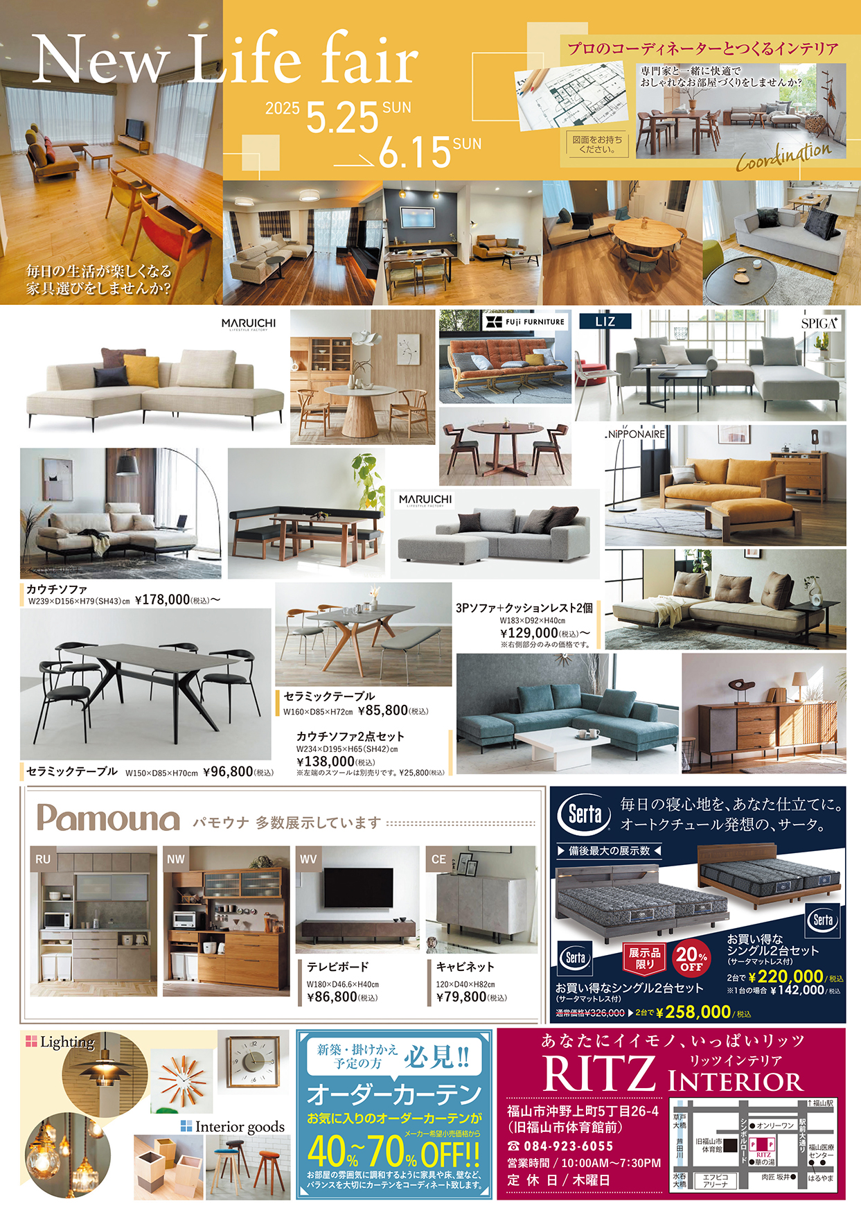 快適でおしゃれな暮らしを叶える「New Life Fair」を、福山のインテリア専門店「リッツインテリア」にて開催いたします。