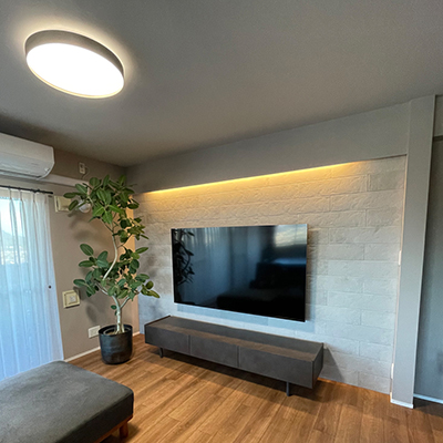 福山市の家具専門店【リッツインテリア】では、福山市内のマンションをリノベーションされたお客様宅へ、セラミックテーブル・テレビボード・カーテン・照明・時計を納品させていただきました。