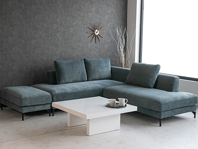 リビングには、3つのクッション付きのカウチソファをお選びいただきました。