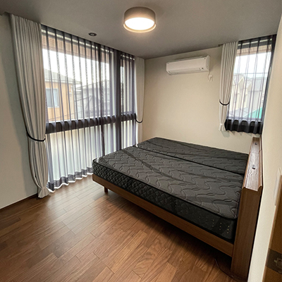 寝室には、人気の【サータ アリウム】シリーズをシングル2台でツインレイアウトに。
