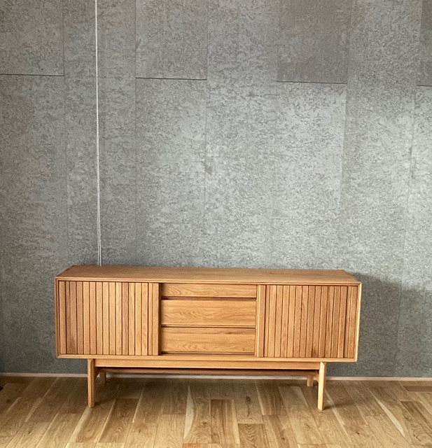 福山市の家具専門店【リッツインテリア】にて、人気のセラミック天板ダイニングセットオーク無垢材キャビネットを納品いたしました。